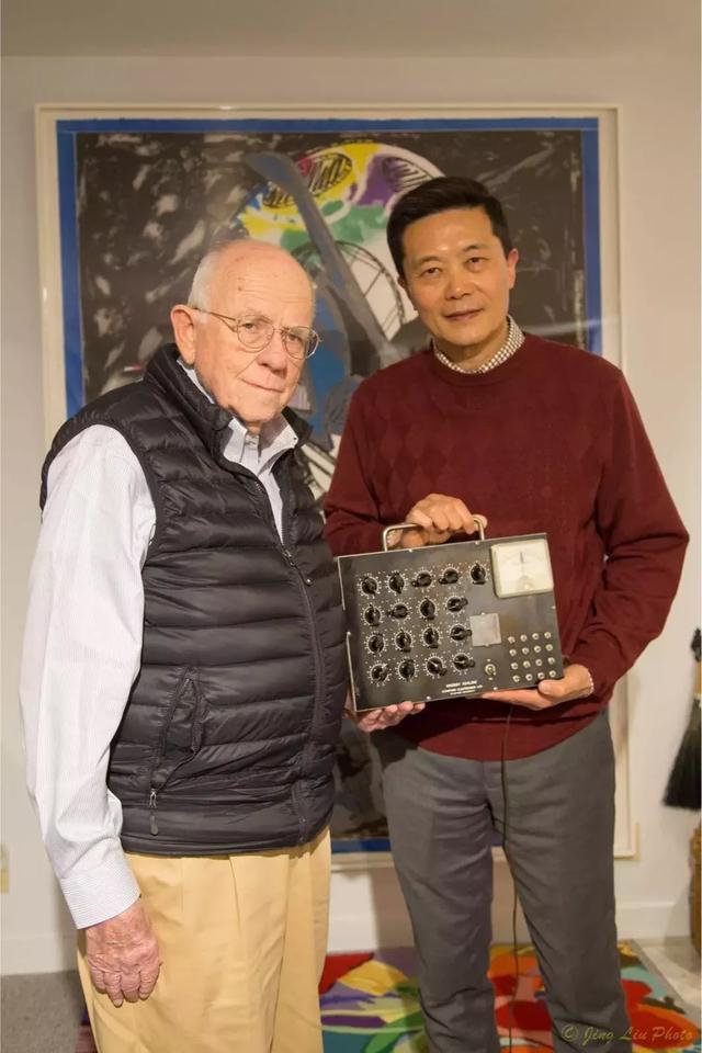大家看这张照片是我和我的斯坦福导师,他是神经网络的鼻祖之一,我手里抱着一个黑盒子,就是一个神经原,是他1960年做出来的世界上第一个能够自我学习的神经原。这一个神经原能干什么呢?它能识别一个简单的图形,比如你告诉它字母A,它学习了以后,就能认识这是不是A。