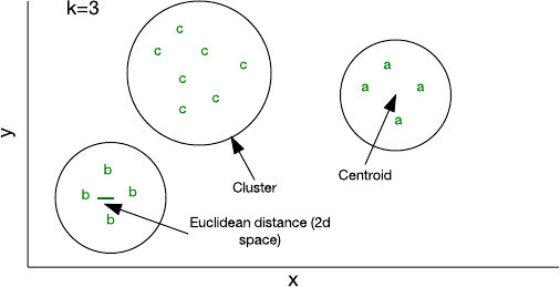 你可以使用少量代码就能实现的最简单的聚类算法是 k-均值(k-means)。其中,k 表示你为样本分配的聚类的数量。你可以使用一个随机特征向量来对一个聚类进行初始化,然后将其它样本添加到其最近邻的聚类(假定每个样本都能表示一个特征向量,并且可以使用 Euclidean distance 来确定「距离」)。随着你往一个聚类添加的样本越来越多,其形心(centroid,即聚类的中心)就会重新计算。然后该算法会重新检查一次样本,以确保它们都在最近邻的聚类中,最后直到没有样本需要改变所属聚类。