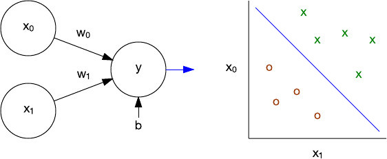 感知器是单层神经网络的一个早期监督学习算法。给定一个输入特征向量,感知器可对输入进行具体分类。通过使用训练集,网络的权重和偏差可为线性分类而更新。感知器的首次实现是 IBM 704,接着在自定义硬件上用于图像识别。