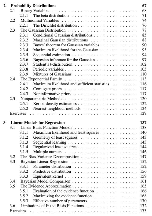 线性基函数模型、偏置方差分解、贝叶斯线性回归、贝叶斯模型比较、The Evidence Approximation、固定基函数的局限性