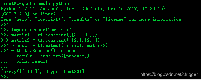 # 创建一个常量 op, 产生一个 1x2 矩阵. 这个 op 被作为一个节点