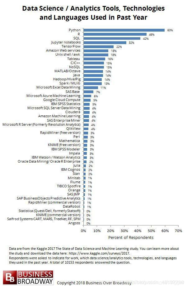 下表列举了数据科学家和机器学习工程师的常用工具,读者可以查看这些工具的流行度。