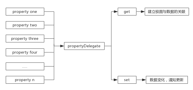如果代码中有很多这样的属性,而且对某些属性进行特定的处理,上面的写法无疑会产生很多冗余。属性代理(propertyDelegate)的出现就是解决这个问题的,属性代理是一个泛型类型,不同类型的属性都能够通过该属性代理进行特定的处理: