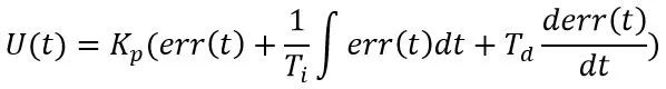 PID算法包含了比例(Proportion)、积分(Integration)、微分(Differentiation)三个环节,其根据被控对象实际输出与目标值的偏差,按照三个环节进行运算,最终达到稳定系统的目的,其具体公式如下:
