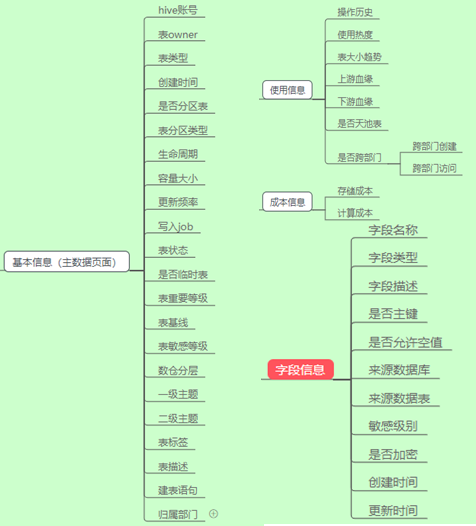 技术元数据:存储相关数据,包括表的元数据、字段元数据等。
