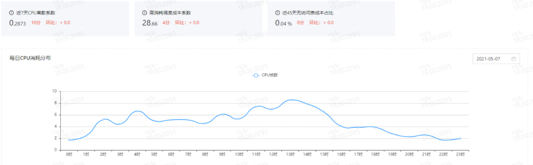 资源利用:考察近7天CPU离散系数、高消耗调度成本系数及近45天无访问表成本占比。