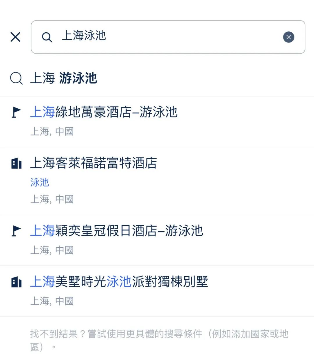 以下以“上海热门泳池酒店”为例,展示用户因缺乏语义搜索功能所面临的繁琐操作: