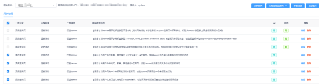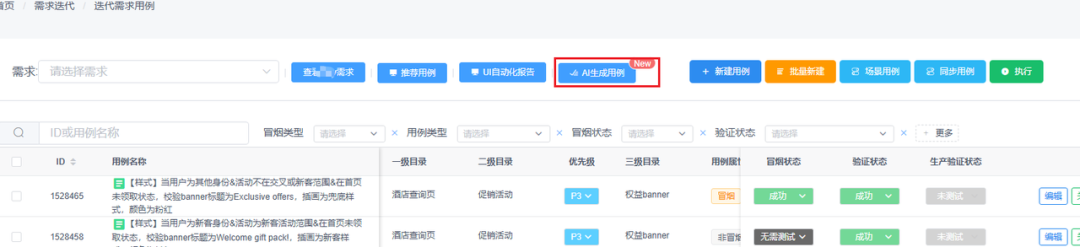 为了更好的量化用例生成的效果,我们建立了一套数据回收机制,刻画在实际使用中AI生成测试用例的采纳率及测试用例的覆盖率,具体公式如下: