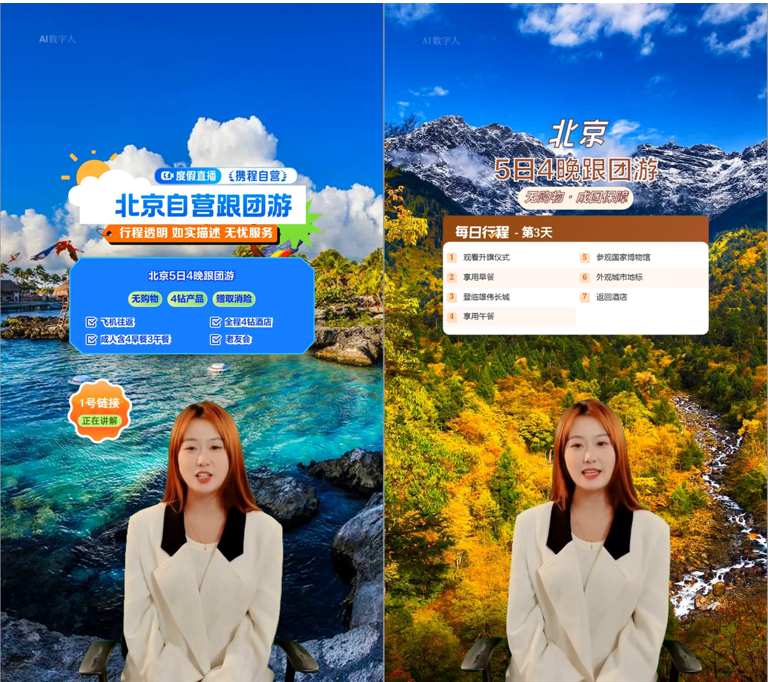 导读:携程数字人直播是携程市场直播研发团队联合市场BI团队设计开发的一种完全通过数字人进行商品讲解、用户互动、画面渲染等直播内容呈现的新直播模式的产品。第一版于25年7月上线,截至10月已经完成了数千场直播,直播时长近百万分钟,产生了上万个商品讲解切片。本文将主要介绍团队设计开发携程数字人直播产品的背景、方案调研、设计和研发过程中遇到的问题以及解决方案,同时也介绍了本产品的主要功能和未来的规划。