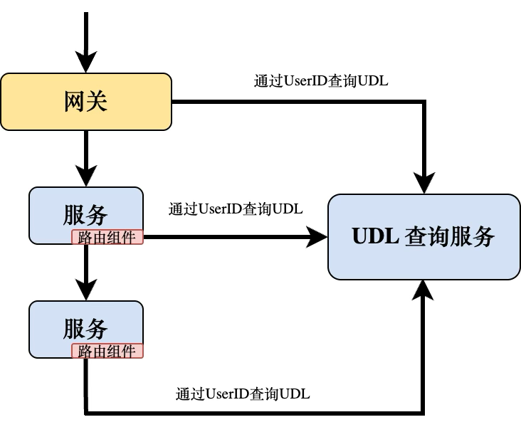 这个登录时下发 UDL 的方案既降低了请求链路上各个环节获取 UDL 的成本,也避免了额外引入 UDL 查询服务这一中心化依赖。