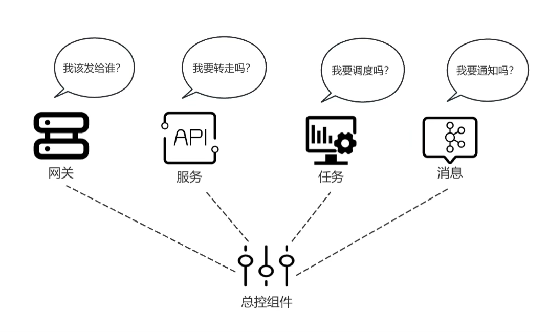 接着,我们还需要制定一套可拓展性极强的调度策略,并构建一个总控组件去完成流量转发的工作。这些工作包括但不限于:将合规区翻译成具体的网关地址、流量比例的控制、流量切换能力、请求失败时的应对策略。而消息、任务调度也要响应总控组件的指令,共同完成用户的跨区域业务。这也意味着,这个控制组件必须具备极强的可靠性和可拓展性,是众多基础组件的底层依赖,如图6所示。
