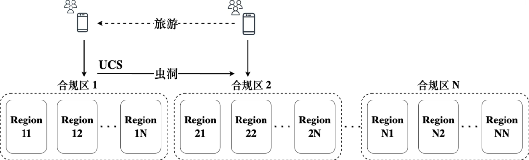 为了满足合规要求,数据分布必须遵循在合规区内封闭的原则,杜绝非法跨合规区的流动。基于合规原则,不同 Region 的数据中心会被划分到不同的逻辑合规区中,用户的数据仅能在该用户所属的合规区内被处理。图10所示是合规区的概念示意。