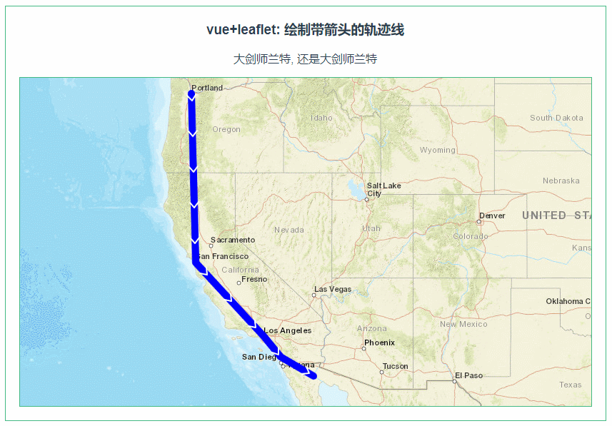 本示例介绍如何在vue+leaflet中绘制带箭头的轨迹线。