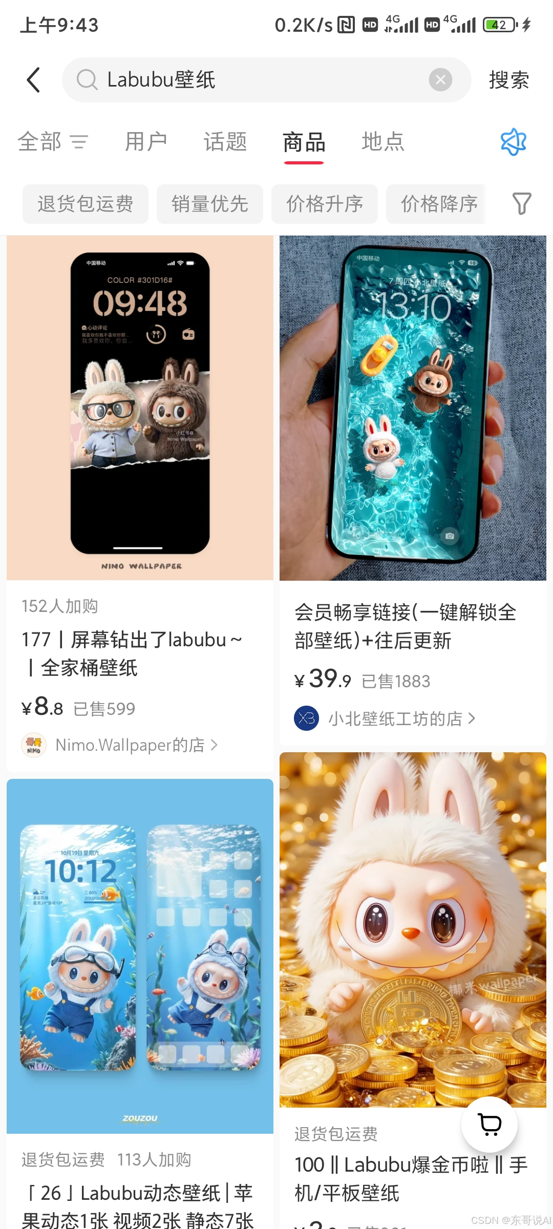 这也带火了Labubu的周边商品,某书上的壁纸卖到了2位数,销量也很可观: