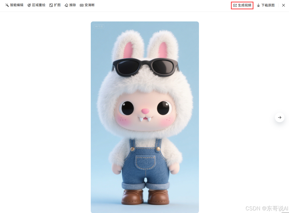 接着使用豆包上线不久的视频生成功能,将刚刚生成的景甜壁纸图片转化为动态壁纸,直接点击放大刚刚生成的图片: