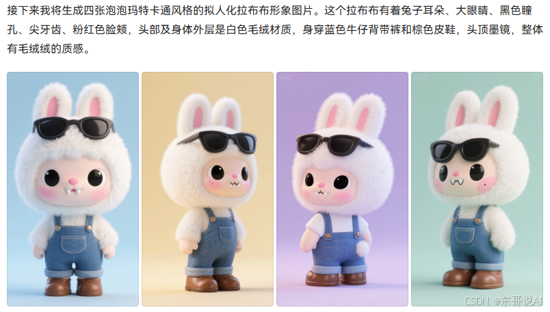 看起来效果还算不错的,基本上实现了提示词中的效果。如果想更近接近Labubu的效果,可以加入参考图: