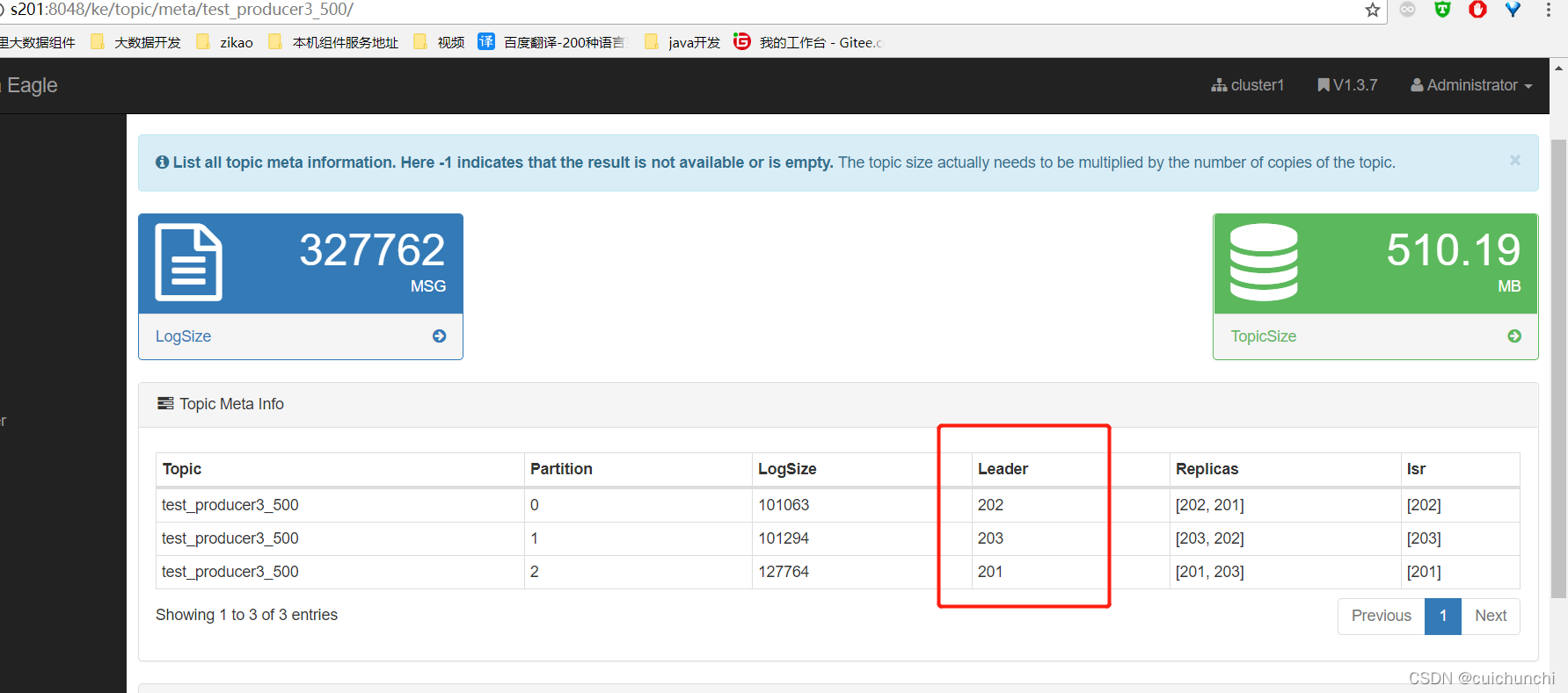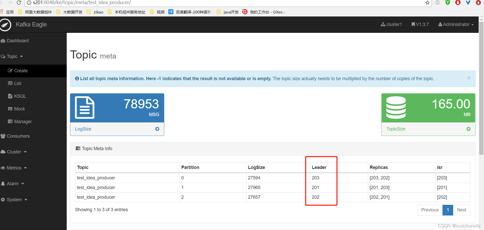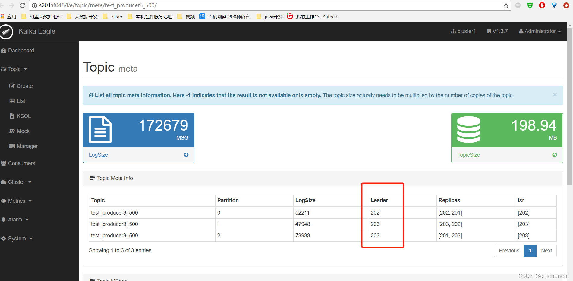 其中s203机器作为分区【1、2】的leader,导致io开销,最终导致压测出来的结果平均0.67MB/s
