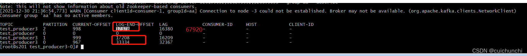 查看消费者组信息:kafka-consumer-groups.sh --bootstrap-server s201:9092,s202:9092,s203:9092 --group aa --describe