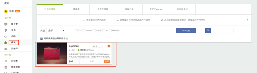 文档下载是很多 app,尤其是企业应用中常用的功能。使用 APICloud 开发 app 时,可以使用 api.download 方法实现下载;预览文档可以使用 superFile 模块。superFile 模块封装了基于腾讯浏览服务 TBS,使用 X5Webkit 内核,实现文件的展示功能,支持多种文件格式(PDF、Word、Execl、TXT、PPT)。