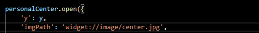 personalCenter.open({ 'y': y, 'imgPath': 'widget://res/personalCenter/d7d1d308fe165b984c09728e7118e9f1.jpg', 'placeholderImg': 'widget://res/common/placeHolder.png', 'userName': 'APICloud', 'count': count, 'modButton': { 'bgImg': 'widget://res/personalCenter/mod_normal.png', 'lightImg': 'widget://res/personalCenter/mod_click.png'