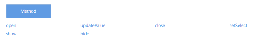 然后我们找到刚才的模块文档,可以看到这个模块分别有六个方法,分别是打开、更新、关闭、设置选中按钮、显示和隐藏。