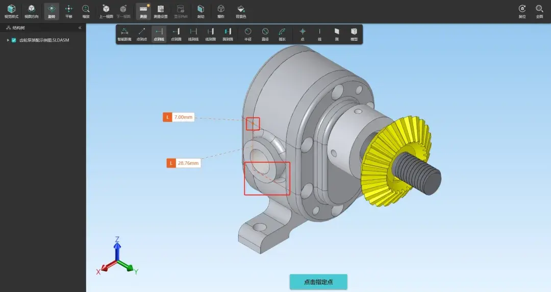 3、点到点:鼠标指定第一个要测量的点,再点击第二个测量点;