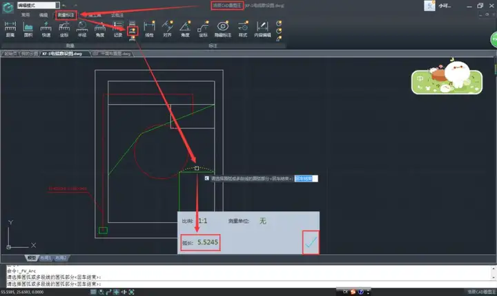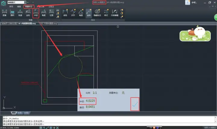5、半径测量:点击需要测量半径的圆或圆弧即可。
