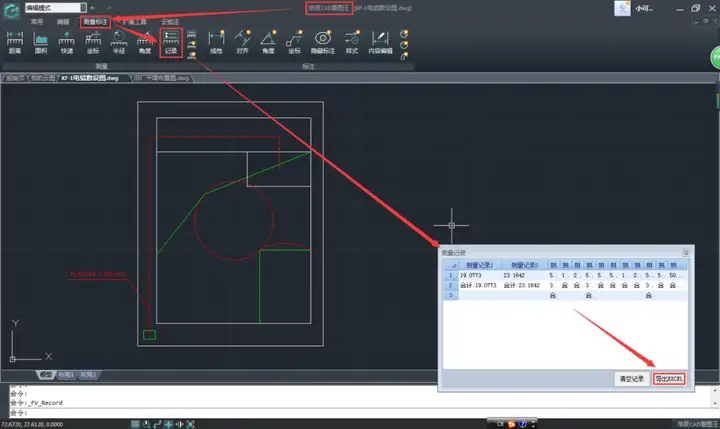 9、测量记录:只要是在测量的过程中勾选了界面下方测量对话框右边的√,那么测量的结果都会保存下来,并可以将其导出Excel表格。