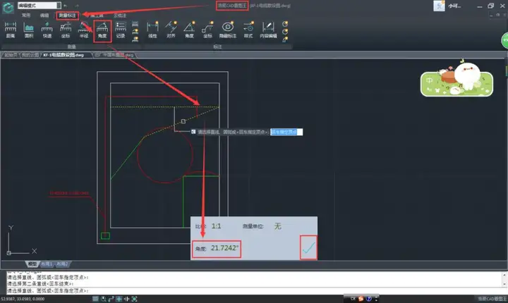 6、角度测量:点击选择需要测量角度的两条边即可。