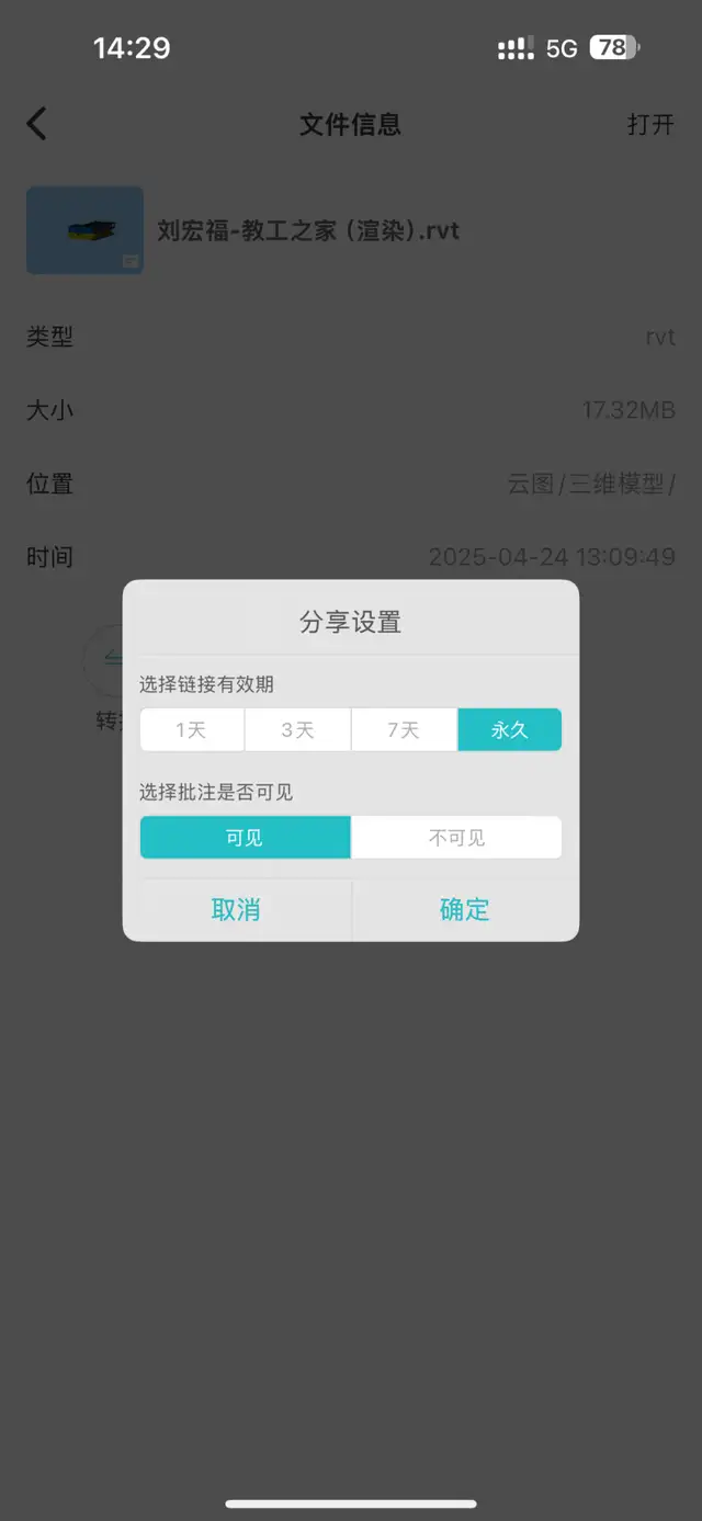 3、一键分享:点击图纸分享,把带批注的模型链接发回给我。我点开,视角直接锁定在他标记的位置,问题一目了然。