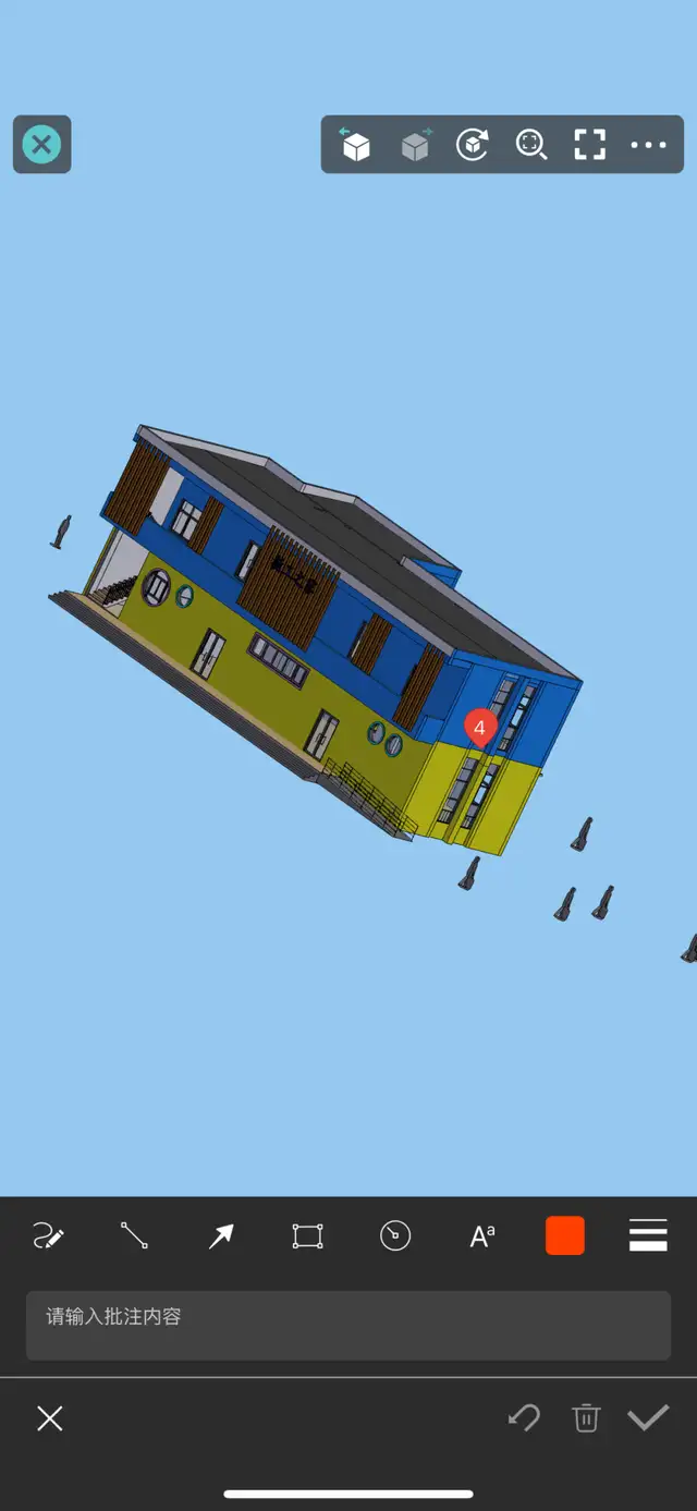 2、添加【批注】:点击下方【批注】→ 选【文字】或【箭头】等其他批注选项,直接在模型上标出,输入相关批注内容;