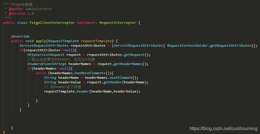 在其他微服务下如果需要,定义Feign的拦截器Bean