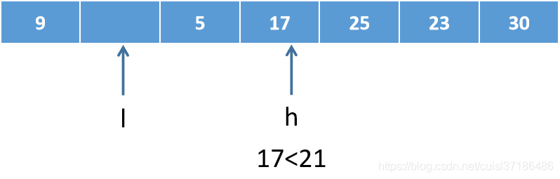 h与l相遇,第一趟排序完成