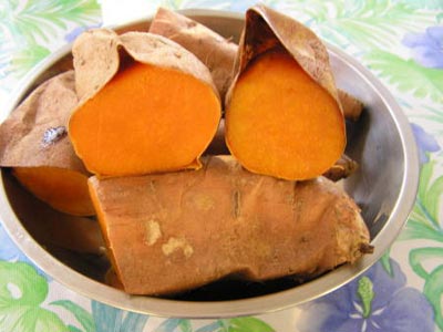 红薯性平,味甘,补脾益气。《纲目拾遗》记:“补中,暖胃,肥五脏。”天寒食用,正气养胃,化食去积,兼可清肠减肥。很多人认为吃完红薯放屁多,其实是胃肠蠕动所致。不过,红薯内淀粉含量很高,吃完后会转为葡萄糖,不适合糖尿病患者食用。