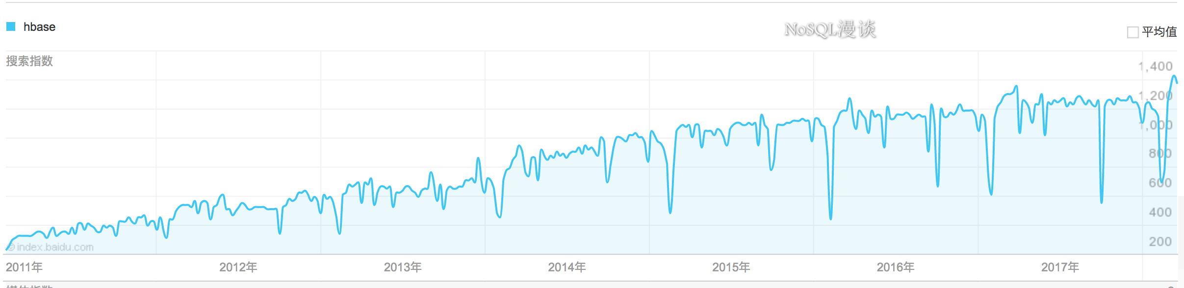 HBase在国内市场已经取得了非常广泛的应用,在搜索引擎中,也可以看出来,HBase在国内呈现出了逐年上升的势态: