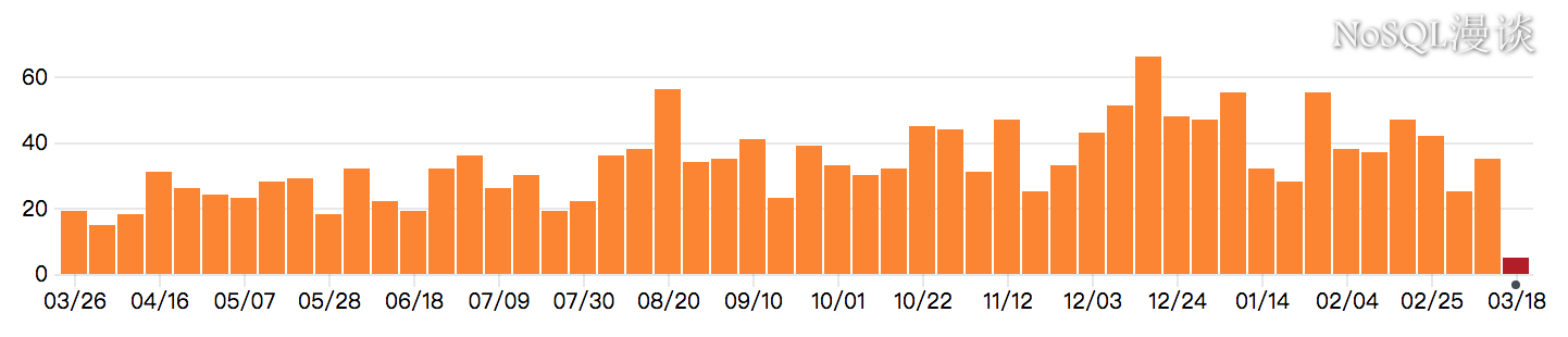 从Apache HBase所关联的github项目的commits统计信息来看,也可以看出来该项目非常活跃: