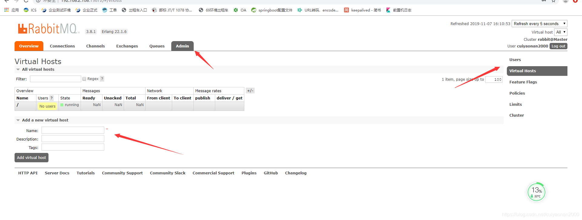 1.点击admin菜单-->右侧的Virtual Hosts选项- Add a new virtual host