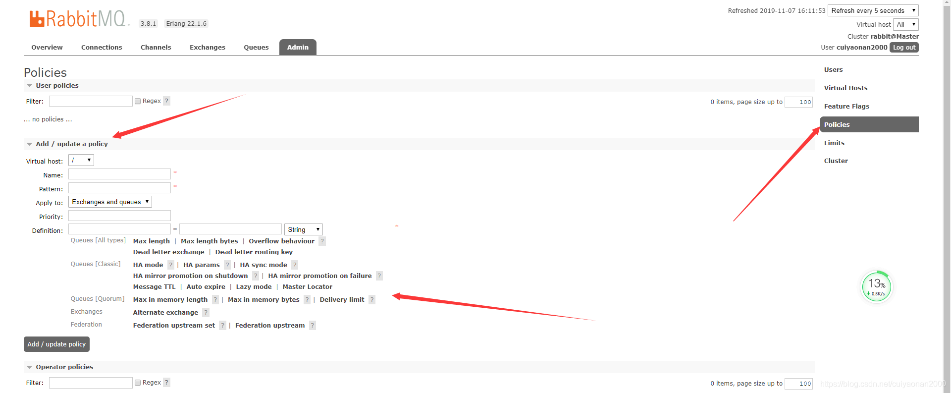 2.点击admin菜单-->右侧的Policies选项-->左侧最下下边的Add / update a policy