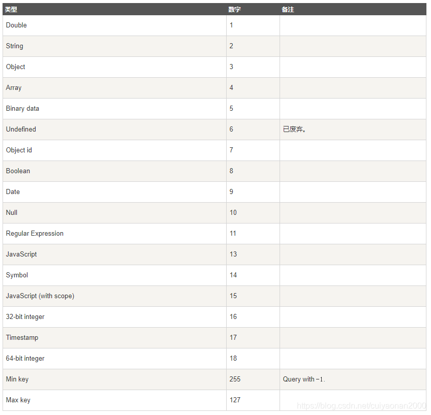 其中如上的数字与类型对应如下的表: