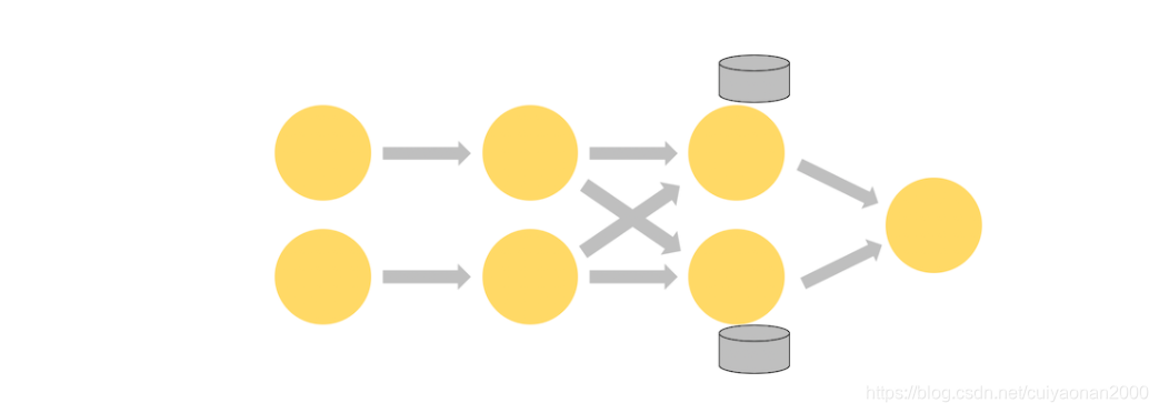 并且你可以看到第二个算子和第三个算子之间是全互联的(fully-connected),它们之间通过网络进行数据分发。