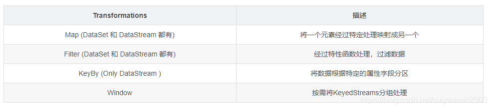 通常,程序代码中的 transformation 和 dataflow 中的算子(operator)之间是一一对应的。但有时也会出现一个 transformation 包含多个算子的情况,如下图所示。(算子即我们的处理数据流的程序)