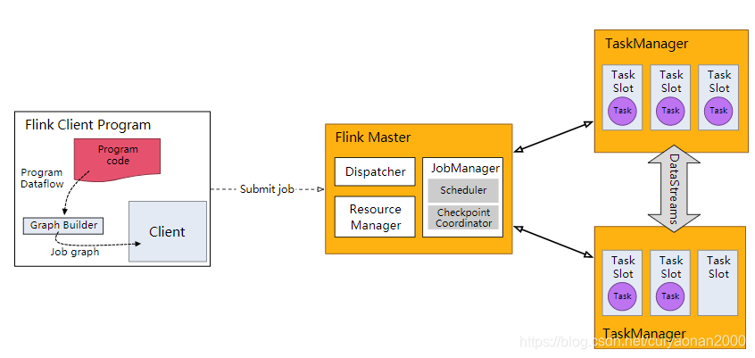 JobManager对作业并行处理并将其子任务分发给 Task Manager 来执行。每个作业的并行子任务将在 task slot 中执行。(这句话很重要cuiyaonan2000@163.com。说明任务拆分是在jobmanager上执行的)