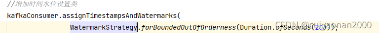 SingleOutputStreamOperator<String> watermarkStream = inputStream.assignTimestampsAndWatermarks(WatermarkStrategy.<String>forBoundedOutOfOrderness(Duration.ofSeconds(10)).withTimestampAssigner(timestampAssigner));