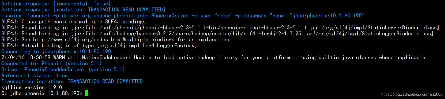 [root@cuiyaonan2000 phoenix] ./sqlline.py zookeeper的ip不包含端口