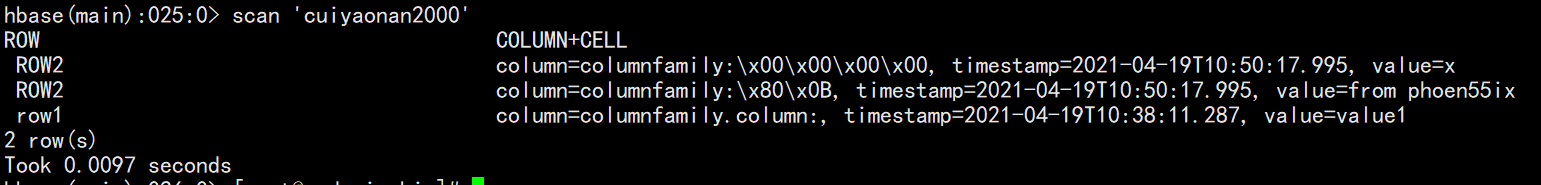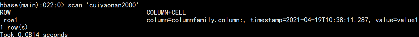 hbase(main):023:0> scan 'cuiyaonan2000'