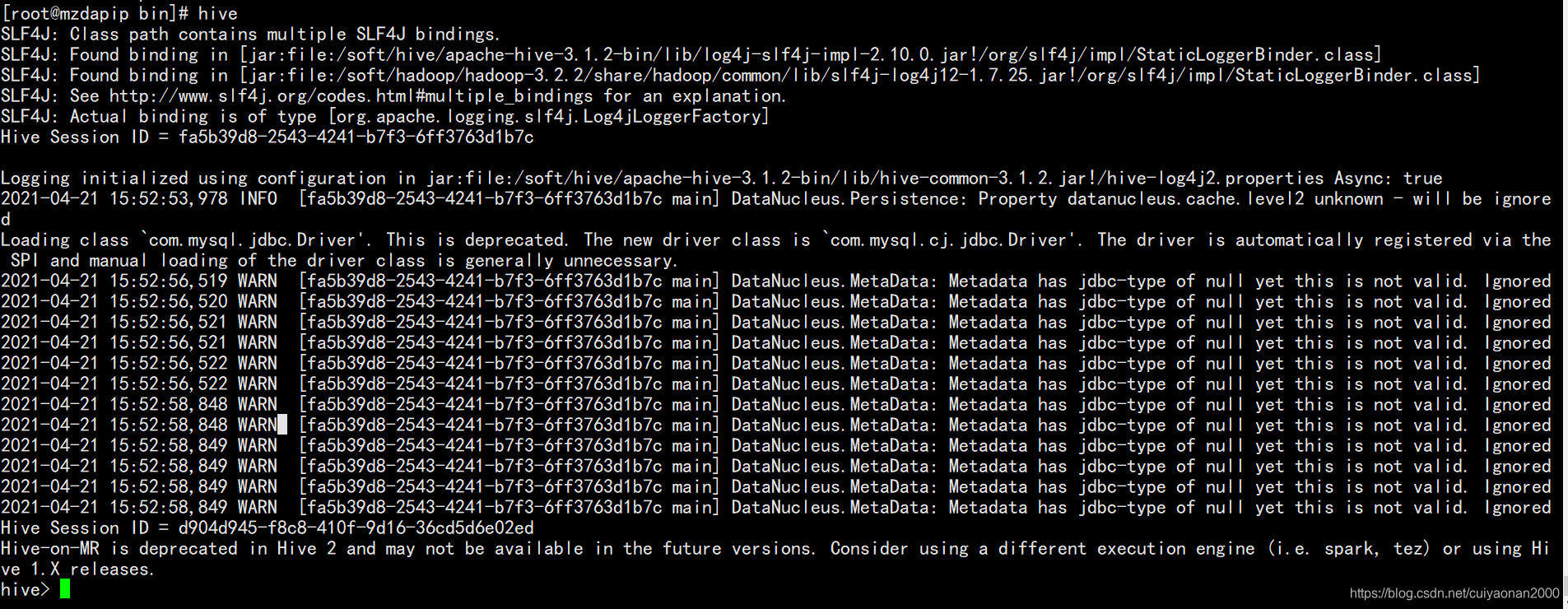 [root@cuiyaonan2000 bin]# ./schematool -dbType mysql -initSchema