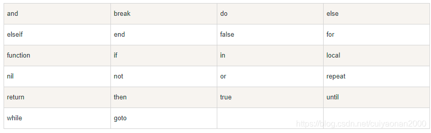 以下列出了 Lua 的保留关键词。保留关键字不能作为常量或变量或其他用户自定义标示符:关键字很少,还有很多逻辑判断的,所以很容易掌握cuiyaonan2000@163.com