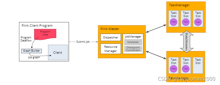 - slot指的是插槽的意思(计算资源),flink中任务的并行性由每个 Task Manager 上可用的 slot 决定。