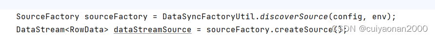 3 .将上面解析生成的SyncConf,然后通过反射加载具体的插件调用createSource方法生成DataStream, 注意这里就是重点了根据 我们的json文件的内容,来获取StreamSourceFactory ,然后创建的数据内容是DataStream----从这里开始就是重点了