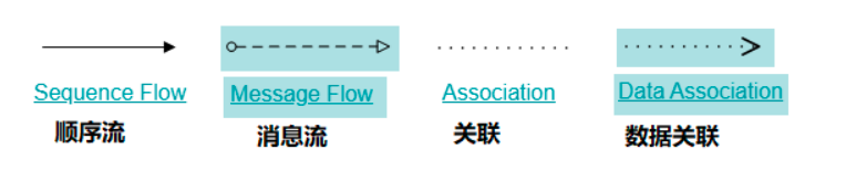 - 关联:用一根带有线箭头的点线表示,用于将相关的数据、文本和其他人工信息与流对象联系起来。用于展示活动的输入和输出